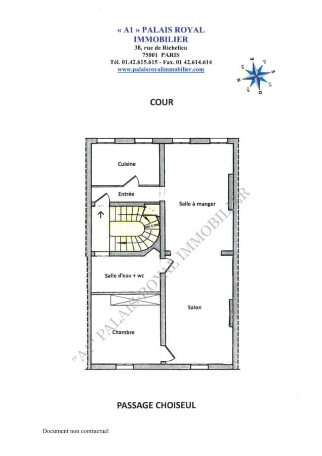 In the heart of Paris, in an old building (1827), in the Passage Choiseul, an architectural complex listed as a historic monument, close to transport links and shops. Access to the Passage Choiseul and the building is secured by a digital code.